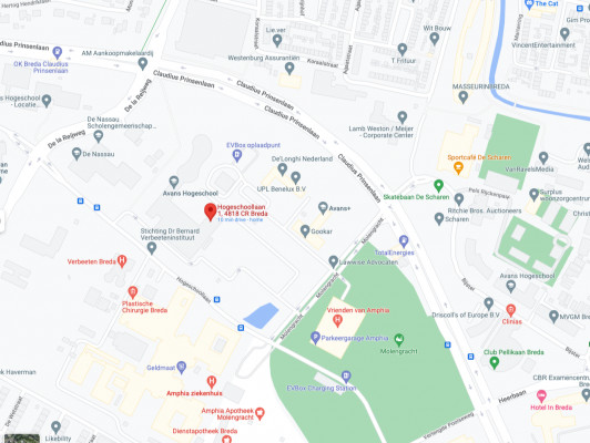 Voor gebruik van het parkeerterrein van Avans Hogeschool, kan men zich melden bij de slagboom van het parkeerterrein aan de Molengracht (recht tegenover de parkeergarage van het Amphia ziekenhuis). Voor de navigatie kies je Molengracht en niet Hogeschoollaan. Vanaf de Claudius Prinsenlaan is het de tweede parking rechts.